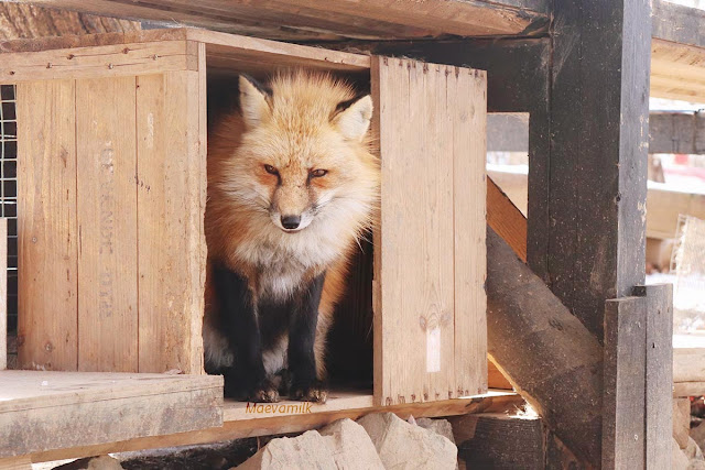 Je dois bien avouer avoir eu une légère amertume pour ce village, en me demandant si ces renards étaient bien traités, on y voit des cages par ci par là, bien que nous ne voyons aucuns renard enfermé. J'imagine qu'ils sont enfermé en cas de maladies ou de soucis. Ce qui m'a le plus choqué était le faite que l'on pouvait payer pour pouvoir en toucher et porter... Des gens faisaient la queue près de l'enclot pour porter chacun son tour ces pauvre bêtes. J'imagine donc que ces renards étaient sûrement drogués car ils étaient comment dire... mou de chez mou. Quand j'ai vu cette scène pas très plaisante, j'ai couru à l'enclot pour passer à autre chose.